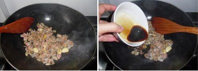 2、锅中放油放姜葱蒜爆香,倒入海瓜子迅速翻炒