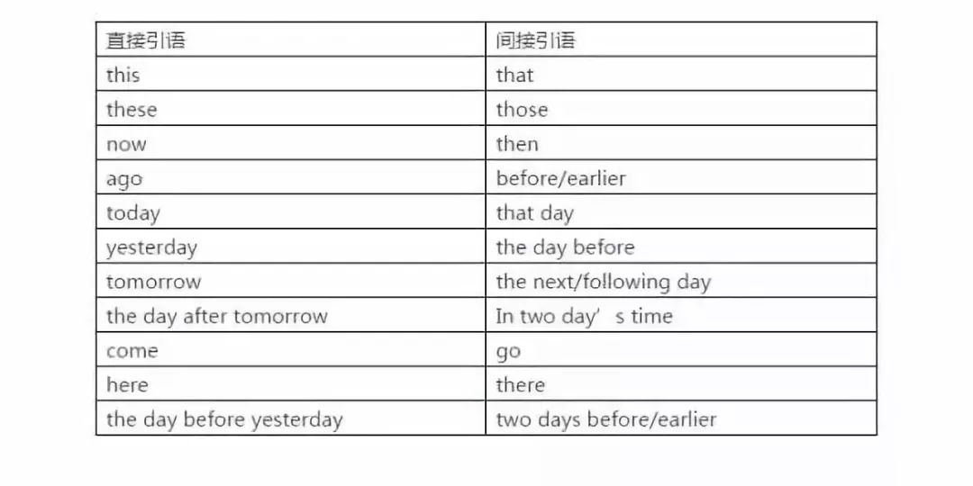 (3)指示代词、时间状语、地点状语和动词的变化
